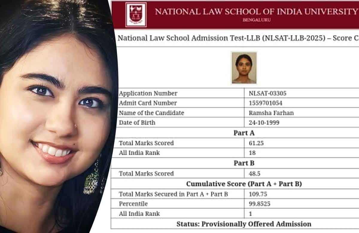In a moment of immense pride for Hyderabad, RamshaFarhan has secured the 1st Rank in NLSAT-LLB 2025, the national-level entrance examination for admission to the prestigious National Law School of India University (NLSIU), Bangalore — widely regarded as the top law school in the country.