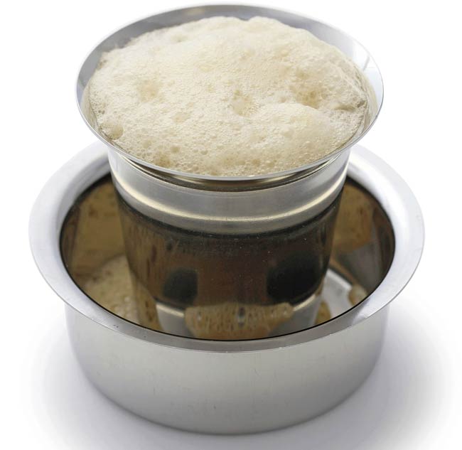 The ground coffee is kept inside a chamber and filled with hot water. Overnight, the coffee filters down into a chamber right under it, giving the final decoction a strong flavour,” says Jignesh Shah, a Mumbai-based coffee entrepreneur. He adds that in most South Indian families, there’s a tradition of offering the first drink from the brew to the head of the family in the morning.