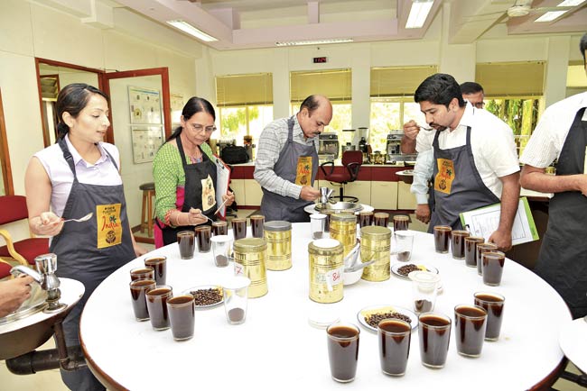 A tasting session in progress at the Coffee Board head office in Bangalore. Pic courtesy/ Dr Ashwini Kumar BJ