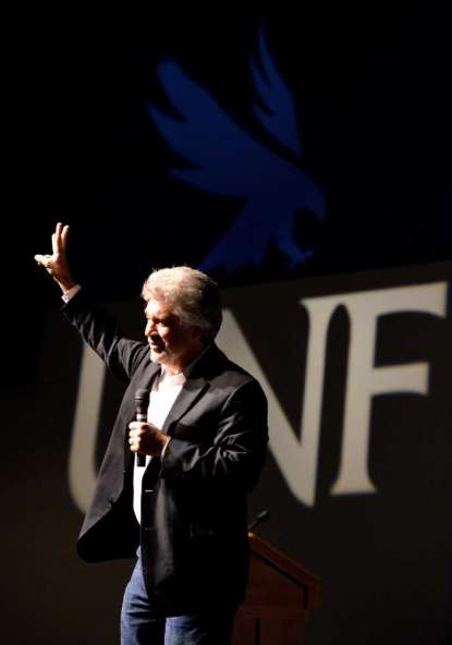 On Sunday, Emerson was among Northeast Florida residents as well as UNF students nearly filling the theater for the screening and panel discussion, part of the 2014 Distinguished Voices Lecture Series. The program co-hosted by UNF and Better Together at UNF, a student organization composed of religiously diverse students with a mission of mobilizing their peers to voice their values, engage with others, and act together to make the world a better place.