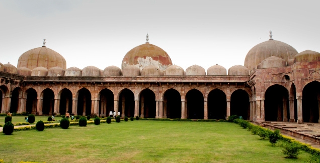 The first phase of development is underlined by the construction of mosques at Dhar and Mandu, mostly using material available from the ruins of Hindu temples. Examples include the Kamal Maula Masjid (A.D. 1395) and the Lat Masjid (A.D. 1405) at Dhar and the Dilawar Khan Masjid (A.D. 1405) and the mosques of Malik Mughis at Mandu.