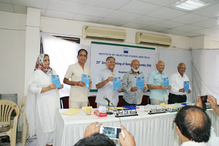Chairman Dr. Mohammad Manzoor Alam (centre) presiding over the two-day 29th Annual meeting of General Assembly of the Institute of Objective Studies, (IOS), in New Delhi.