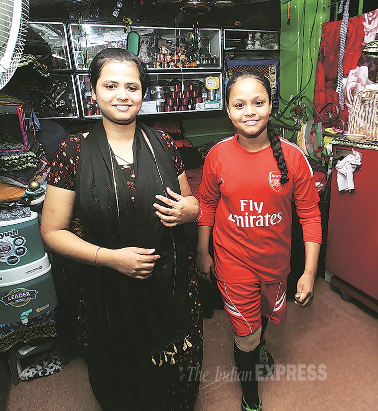 Muslim girl boxer Shaima Ajmeri (11) with her sister Shama Ajmeri (23) at their home at Ekbalpore in Khidderpore area. Express photo by Subham Dutta. 17.11.15