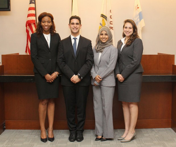 The Chicago-Kent trial advocacy team represented by Shahina Khan, 3rd year JD student with three other students in the National Civil Trial Competition Championship 2017, held at Santa Monica and Los Angeles, Calif. Chicago-Kent won over Georgetown University Law Center, Drexel University Thomas R. Kline School of Law, and American University Washington College of Law twice in the quarter and semi finals rounds.