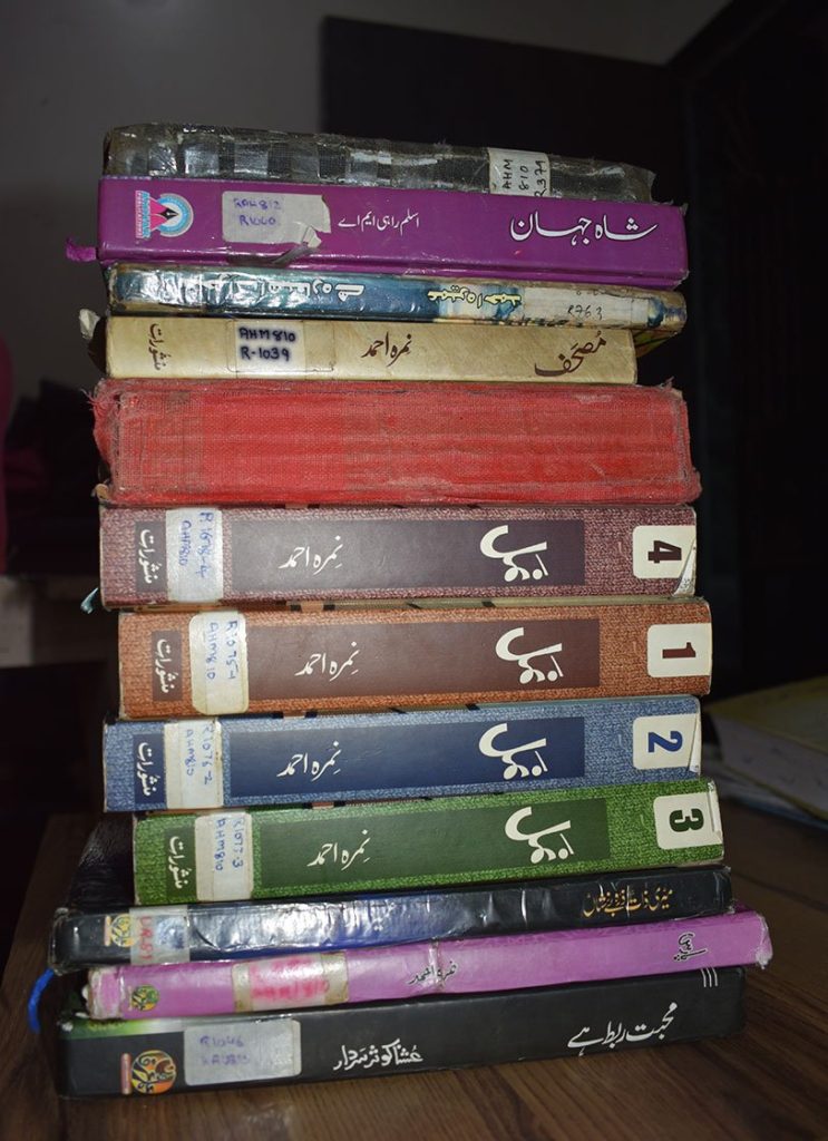 And the pages of the novels of Umera Ahmad (the library’s most-read author), to Faiza’s utter dismay, are dog-eared with plenty of margin notes. There are also books by Razia Butt, Ismat Chughtai, Munshi Premchand, Saadat Hasan Manto, along with the Urdu translations of Shakespeare. And there is Harry Potter, and of course, Chetan Bhagat too.