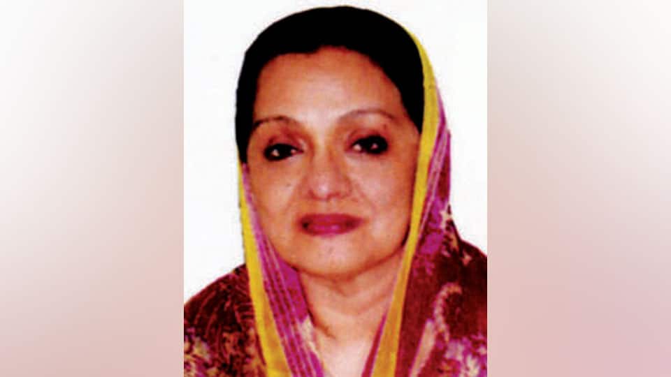 Dr. Mehar Sultana (64), daughter of late Maj. M.S. Khan and a resident of Bogadi here, passed away yesterday.