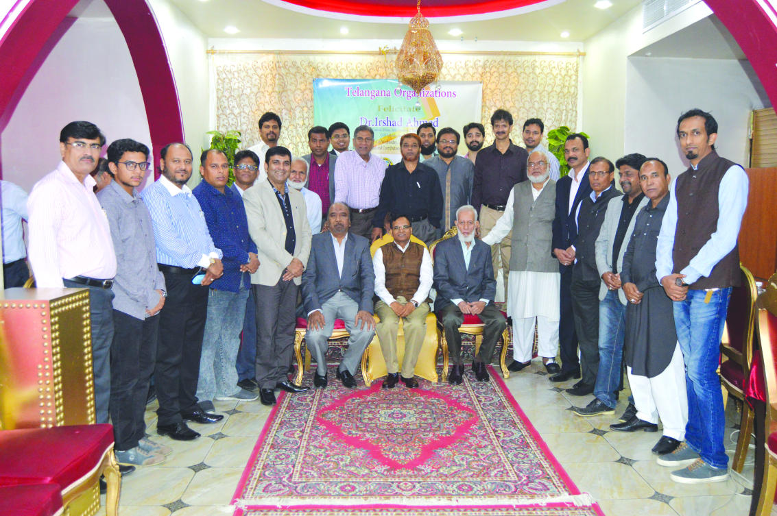 The presidents and vice presidents of the Telangana organizations praised Ahmed for his dedication to the Indian community and in organizing various events; specifically pointing out the large-scale mushaira held at the Consulate of India and promotion of the Urdu language in a foreign land.