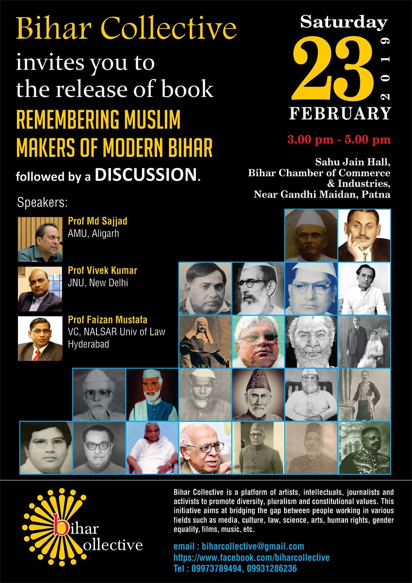 The booklet titled Remembering Muslim Makers of Modern Bihar has been compiled and edited by renowned academician and writer Prof. Mohammad Sajjad on the initiative of Bihar Collective.