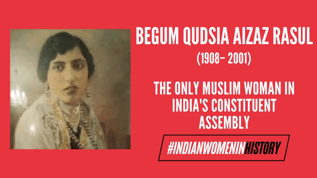 Begum Qudsia Aizaz Rasul was one of the 28 Muslim League members to join the Constituent Assembly of undivided India, and she was the only Muslim woman to be a part of the assembly.