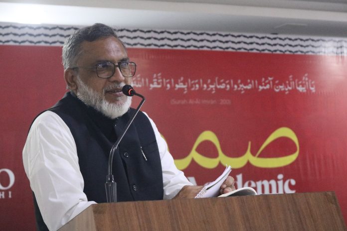 Malik Moatasim Khan, Vice President, JIH, addressing the Sumud Academic Conference organised by SIO Delhi Zone