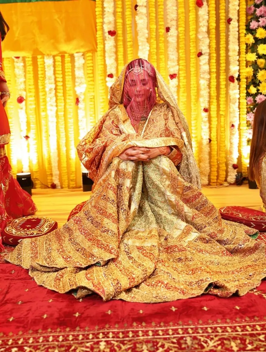 Begum Zamani clad in intricately embroidered sharara for her nikah