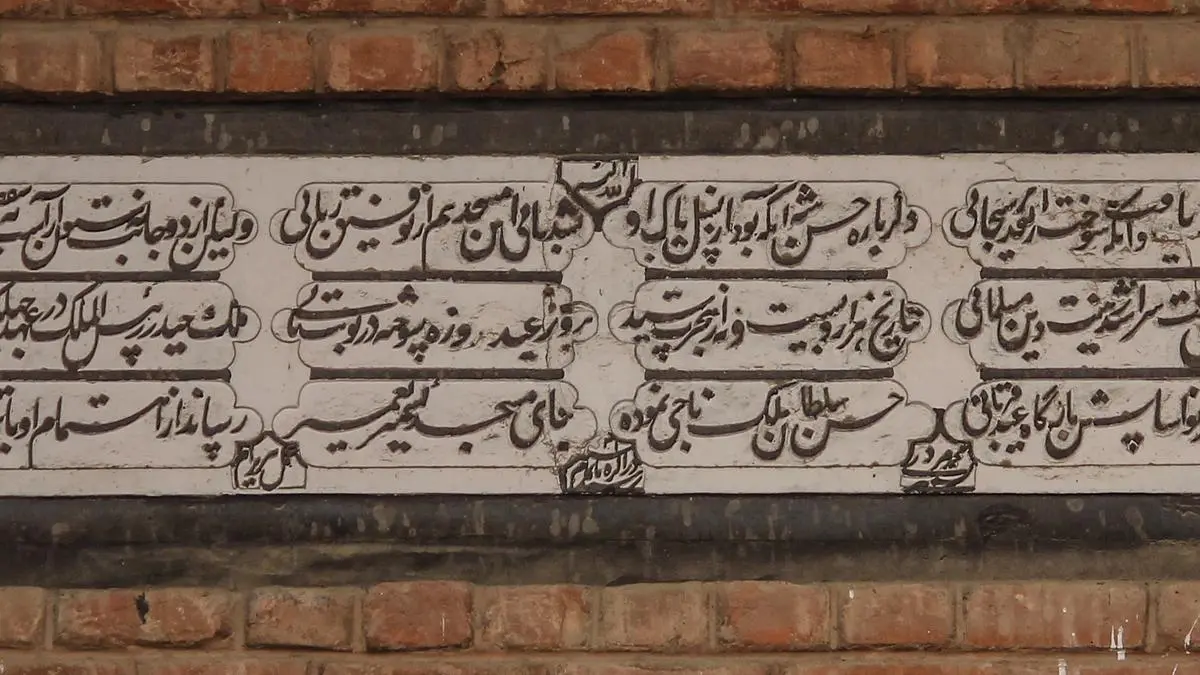 Strolling inside the quadrangle of Kashmir’s 600-year-old Jamia Masjid, worshippers stop to take pictures of the mosque’s large steeple, its outlines sharpened against the backdrop of Hari Parbat, the famous fort-hill of Srinagar. What they usually overlook is a limestone plaque with Persian inscriptions embedded in the wall just above the mosque’s entrance.