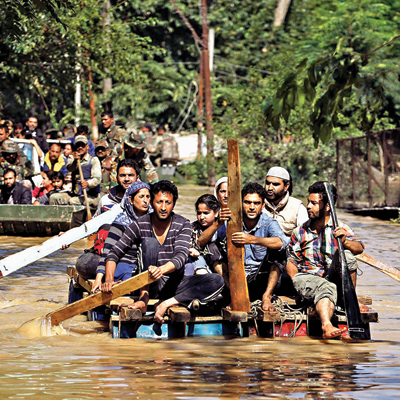 I am appalled to see no one from National Disaster Response Force (NDRF) is carrying out the rescue operations. It is the young locals who have used all ingenuity at their command, to make temporary boats from tyre tube, plastic water tanks and wooden planks to rescue people from inundated houses. Only at Hyderpora bypass Airport road, I saw a government truck carrying evacuated people from Tangpura, Batmaloo to Hyderpura flyover.