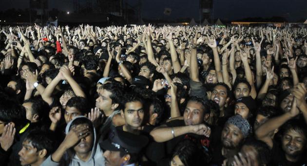 Fans during 'Metallica', the heavy Metal band's live concert at Palace Grounds in Bangalore on October 30, 2011. Photo: K. Bhagya Prakash
