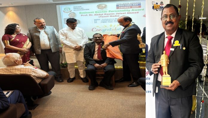 “Medicine cures diseases but only doctors can cure patients.” This thought-provoking quote of Swiss psychiatrist, psychotherapist, and psychologist Carl Gustav Jung is relevant in the context of noted paediatrician from Coimbatore Dr Abdul Kasim Jaleel Ahamed as he was honoured with ‘Eminent Doctor Personality Award’ for the year 2025 at an event held at Indian Medical Association (IMA) headquartered in New Delhi on the National Doctors Day event.