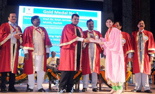 Maharashtra Chief Minister Devenndra Fadnavis in Nashik to address the 14th Convocation of the Maharashtra University Health Sciences (MUHS), felicitated Almas Nazim Syed and also conferred on her citation and gold medals.