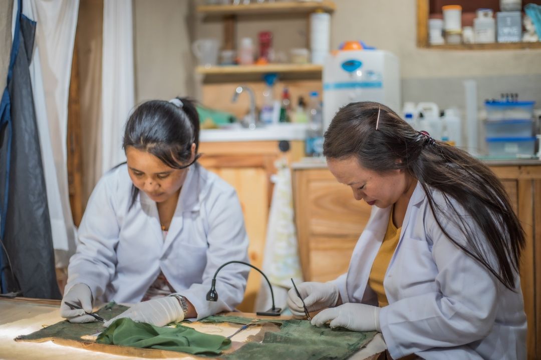 “Most of the time, we work in groups of two or three women on one thangka, and depending on the scale of the task, it takes about a month or two if the damage is extensive,” she says.