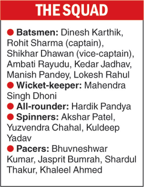 Rohit Sharma will lead the side while Shikhar Dhawan is the vice-captain.