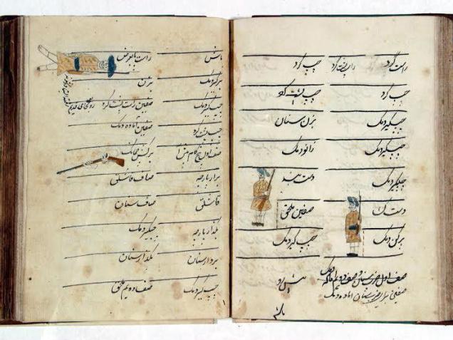 The notebook written in Persian (Shikasta) touches on a variety of subjects but is mainly a treatise on the art of artillery. It is divided into eight chapters with introduction dealing with certain tenets of Islam and chapters dedicated to rules for horsemen and piyada (foot soldiers) of his army.